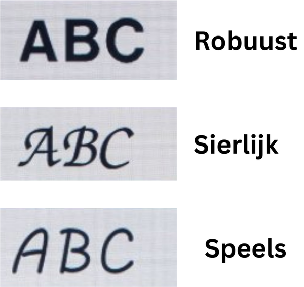 Let op! Het lettertype Robuust is door de stof van de knuffeltjes het beste te lezen. Sierlijk & Speels zijn leesbaar maar vallen iets dunner uit.