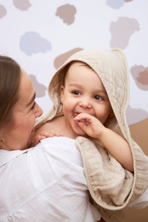 De cape voelt erg zacht aan ideaal dus voor je baby’s tere huidje. De capuchon zorgt ervoor dat het hoofdje na het badderen, douchen en zwemmen lekker warm blijft.