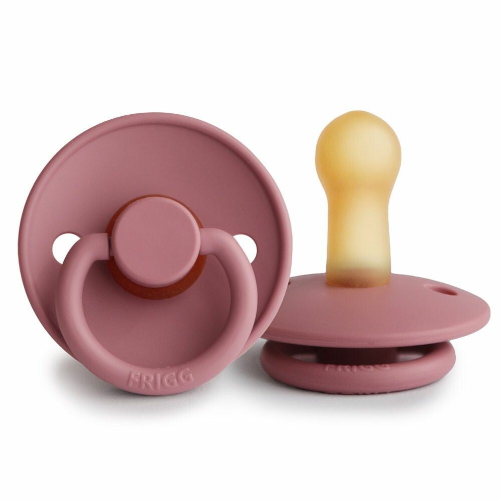 FRIGG is een Deens merk fopspenen met verschillende vormen en kleuren, gemaakt van natuurrubber of siliconen. Ze hebben dezelfde look en feel als de BIBS spenen.