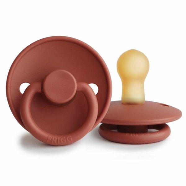 FRIGG is een Deens merk fopspenen met verschillende vormen en kleuren, gemaakt van natuurrubber of siliconen. Ze hebben dezelfde look en feel als de BIBS spenen.