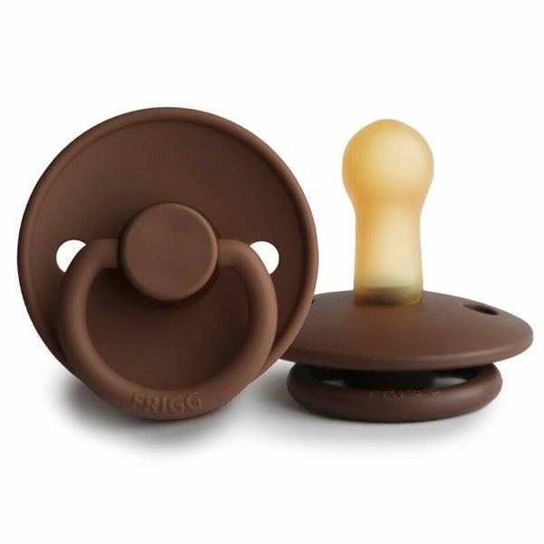 FRIGG is een Deens merk fopspenen met verschillende vormen en kleuren, gemaakt van natuurrubber of siliconen. Ze hebben dezelfde look en feel als de BIBS spenen.