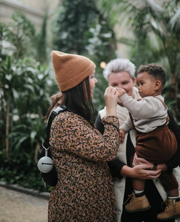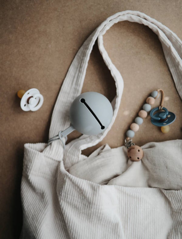 Je kunt de speenhouder makkelijk aan je mombag of kinderwagen bevestigen.