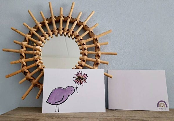 Geef je de mand als cadeau, dan kun je er nu ook een handgeschreven kaartje, met het ontwerp van SteffiJorna Artworks, bij laten doen! Kies de optie, schrijf bij de opmerkingen welke tekst er op het kaartje moet komen en wij doen de rest!