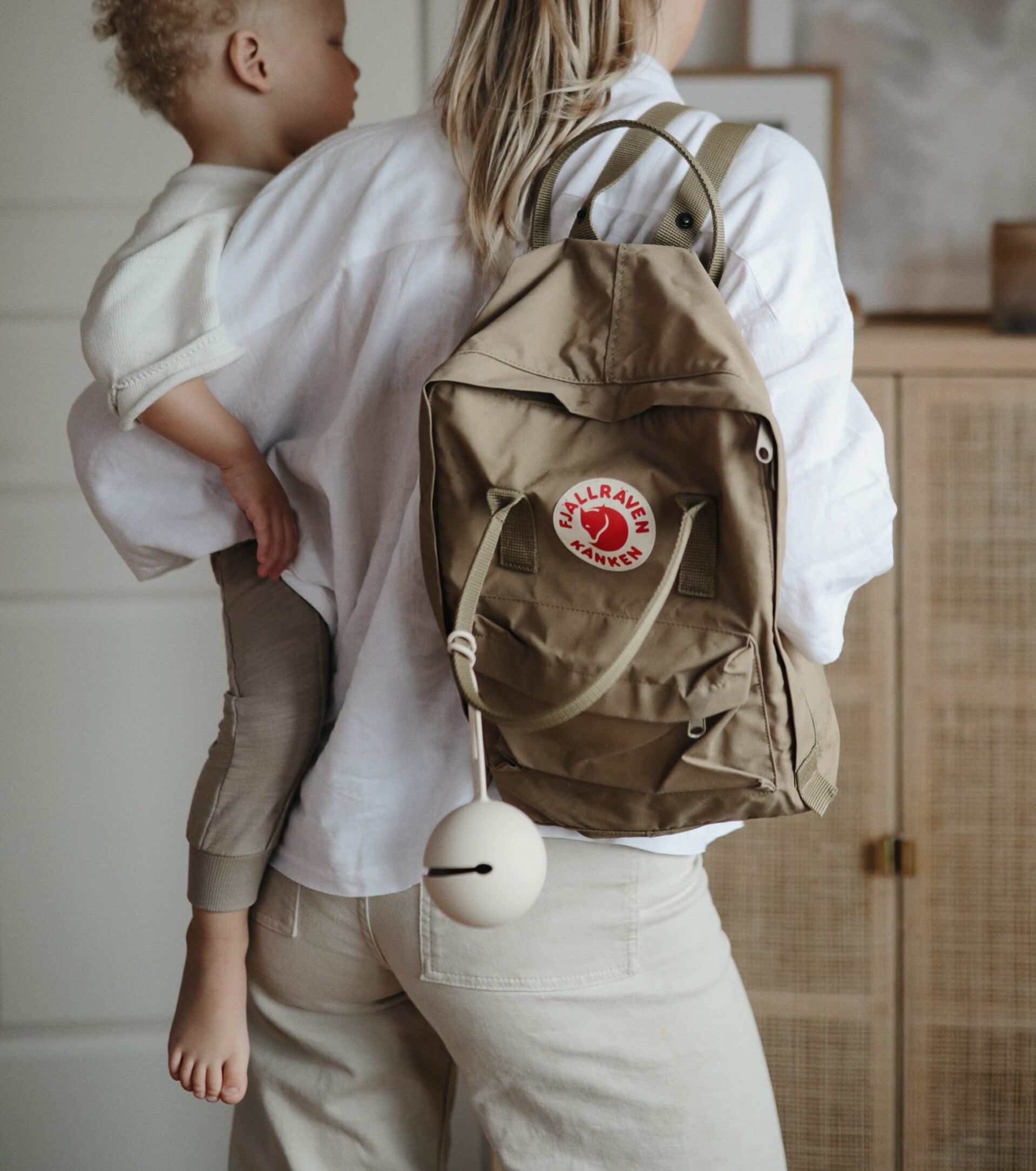 Je kunt de speenhouder makkelijk aan je mombag of kinderwagen bevestigen.